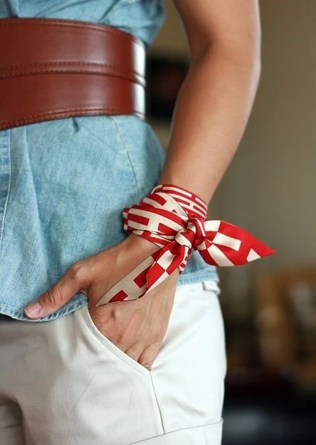 Nếu muốn làm điệu một chút, bạn có thể quấn khăn quanh cổ tay như một chiếc vòng tay hoặc quấn quanh cổ chân như một chiếc lắc chân.