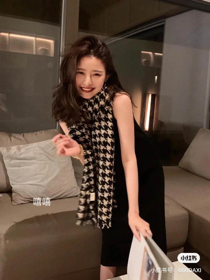 Chiếc khăn quàng họa tiết răng cưa là một trong những phụ kiện được phái đẹp yêu thích để tạo điểm nhấn trong mùa lạnh. Khi kết hợp cùng váy suông không tay, outfit này mang đến nét duyên dáng, thanh thoát, thích hợp cho những ngày thu dịu nhẹ. Đặc biệt, bạn hãy hoàn thiện bộ trang phục với đôi sandal gót cao, bạn sẽ thật nổi bật và cuốn hút trong từng bước đi.