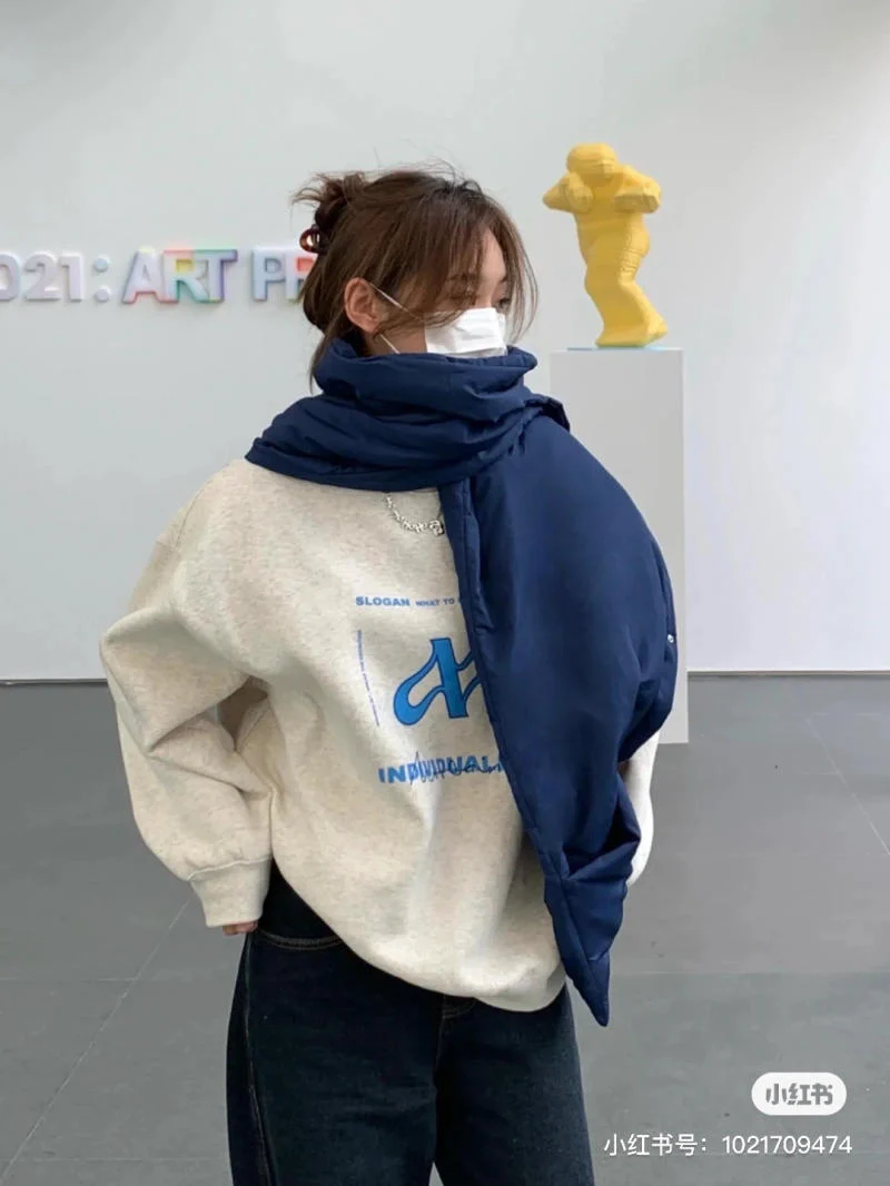 Các cô gái yêu thích vẻ ngoài trẻ trung và năng động đừng bỏ qua bộ outfit này. Một chiếc áo sweater đầy cá tính kết hợp khăn quàng màu xanh đậm nổi bật, tạo nên tổng thể ấm áp và tràn đầy năng lượng. Bạn có thể kết hợp set này cùng quần jeans, thêm đôi sneakers hay sandals, chắc chắn sẽ giúp bạn tỏa sáng mọi lúc, mọi nơi thu hút mọi ánh nhìn.